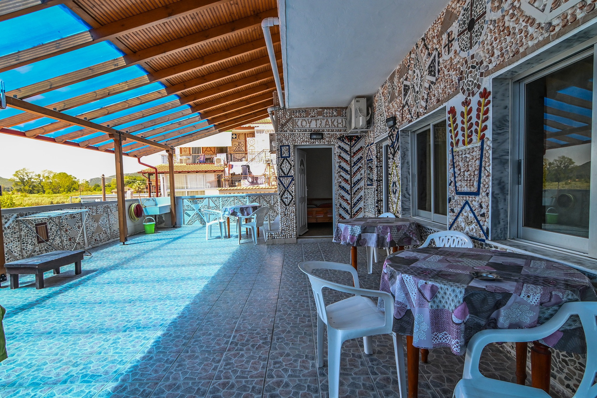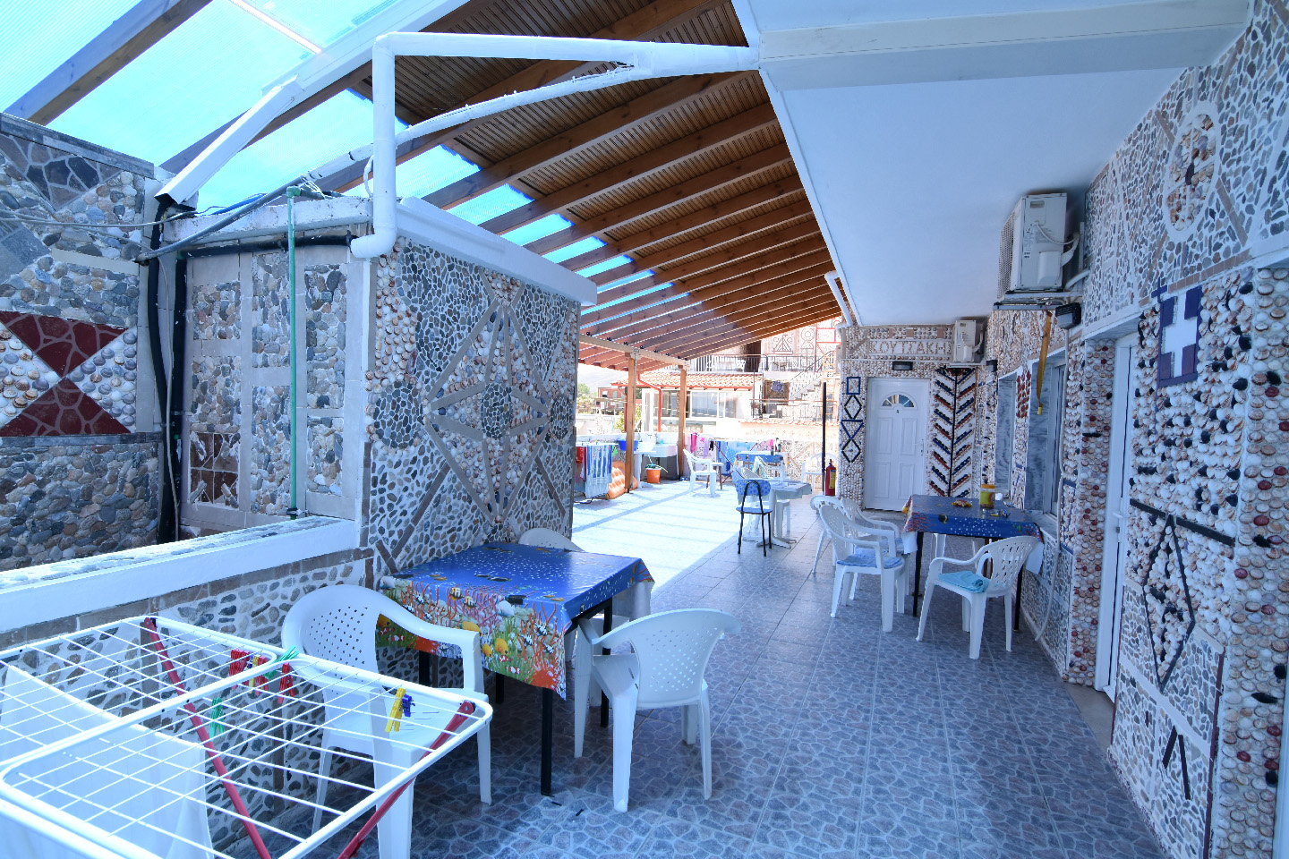 Thousands of seashells make up inspired representations of Greek traditional tourism … the sun and the boats will surely impress you! The owners of Fenomeno Rooms have themselves created these works of art and they are waiting for you to enjoy them during your summer vacations!